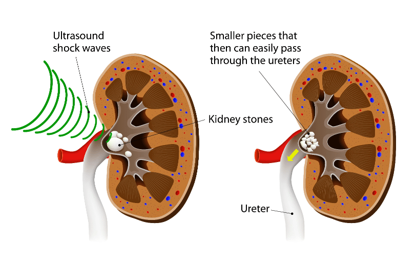 A minimally invasive technology that breaks up kidney stones by using focused ultrasound waves. Waves are introduced to the body externally, so no incision or endoscopy is required for ESWL. The shock waves break large kidney stones into smaller pieces, which will allow for easier passage. The process takes about an hour to complete, in most cases. For a few days after treatment, patients can expect mild pain while urinating.